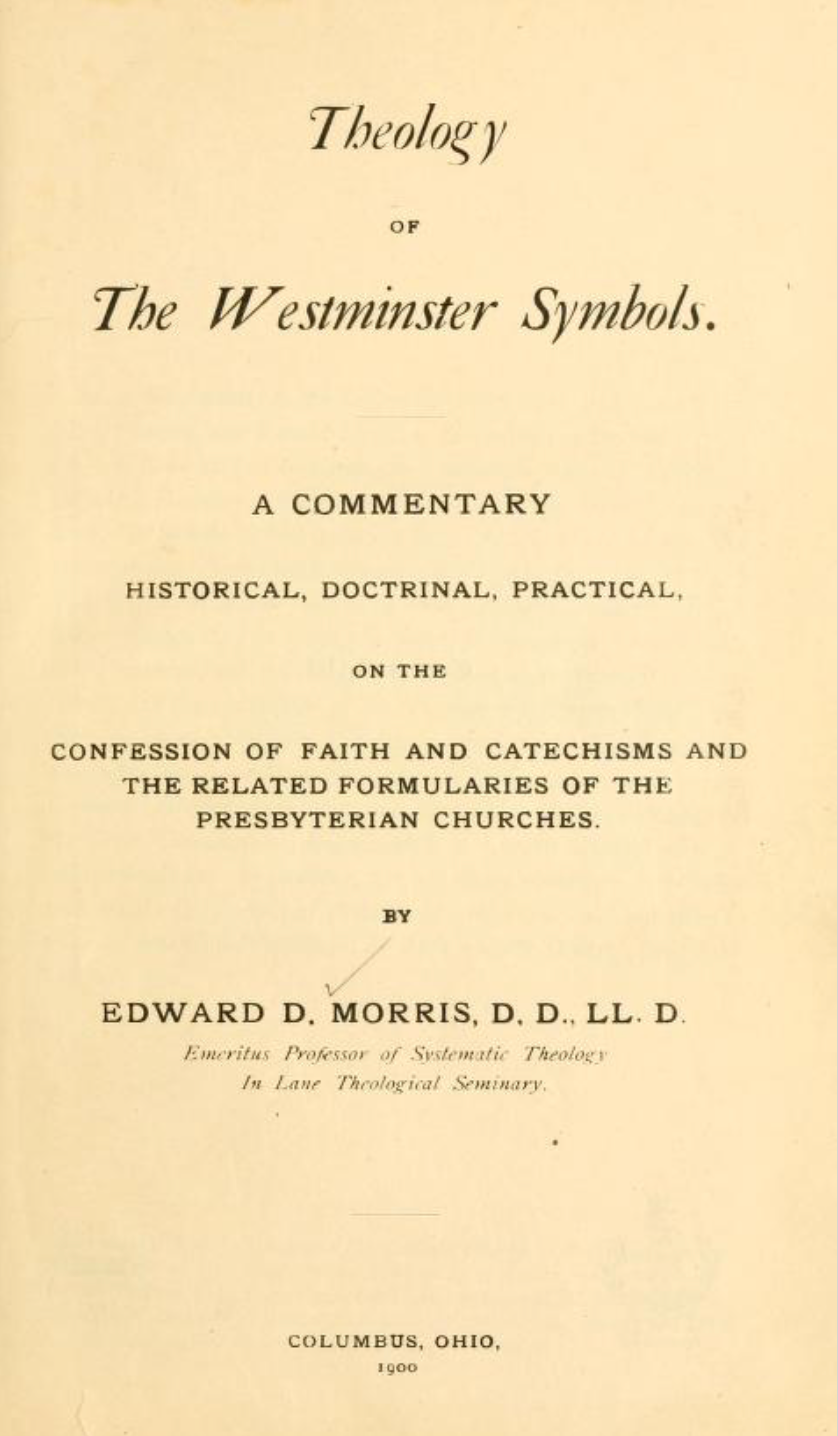 Edward D. Morris – Theology of the Westminster Symbols (1900)
