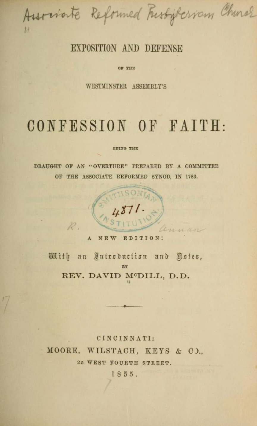 As I understand it, this work was originally produced as an Overture by a committee of the Associate Reformed Synod in 1783, but it was largely, if not exclusively, penned by a single individual, Robert Annan. It was later re-released in 1855 with an introduction by David McDill. The content is helpful, but it is not a line-by-line commentary on the Confession. Instead, each chapter of the commentary explains and defends the doctrines found in the successive chapters of the Confession of Faith.